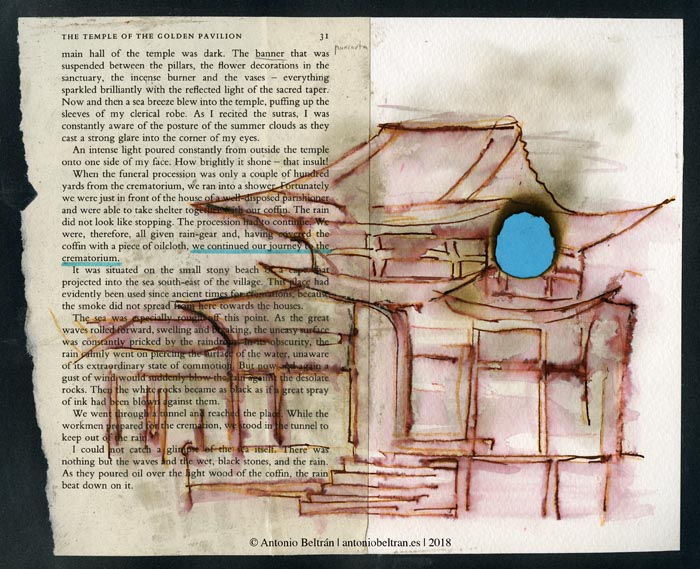 Lá página del libro de Mishima encontrada, finalmente dió lugar a un collage que aquí puede verse. Está en la sección Ideológica de este sitio web.